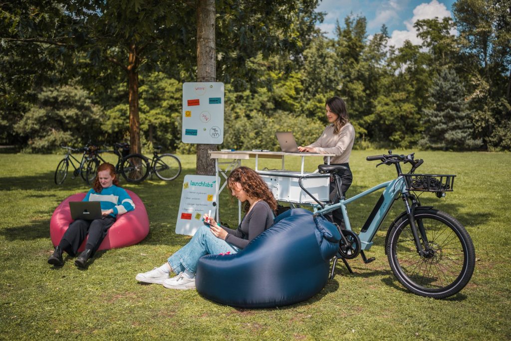 Erfrischungsgetränke sind ebenfalls an Bord und halten die Laune hoch. Ob am Engelbecken direkt vor den launchlabs, auf dem weitläufigen Tempelhofer Feld oder im belebten Gleisdreieck-Park – das flying office lädt dazu ein, die Natur Berlins zu genießen und Arbeiten zu einem inspirierenden Erlebnis zu machen.